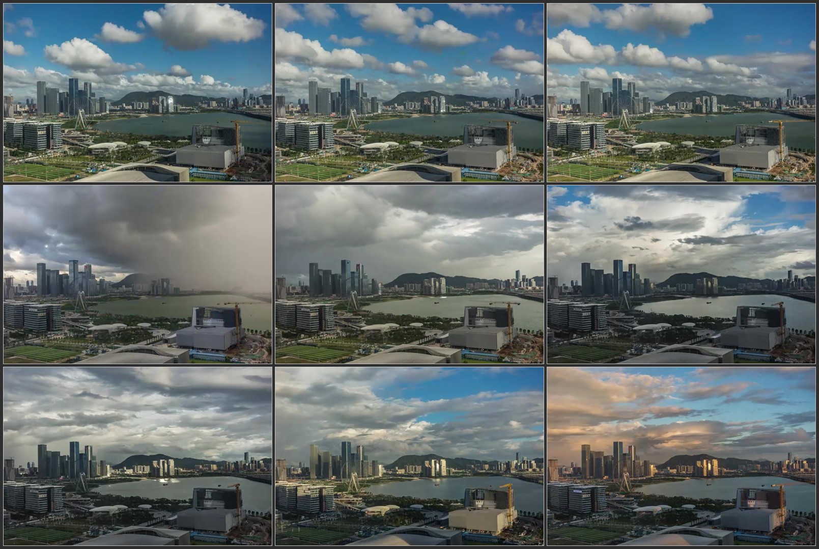 高清延时深圳白转夜晴转雨彩虹宝安区前海
