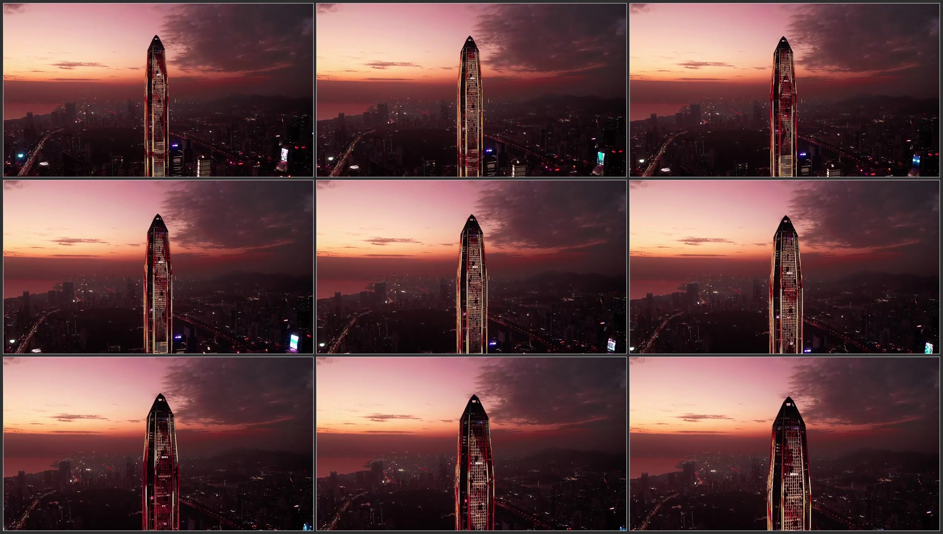 航拍深圳平安大厦天空火烧云风光