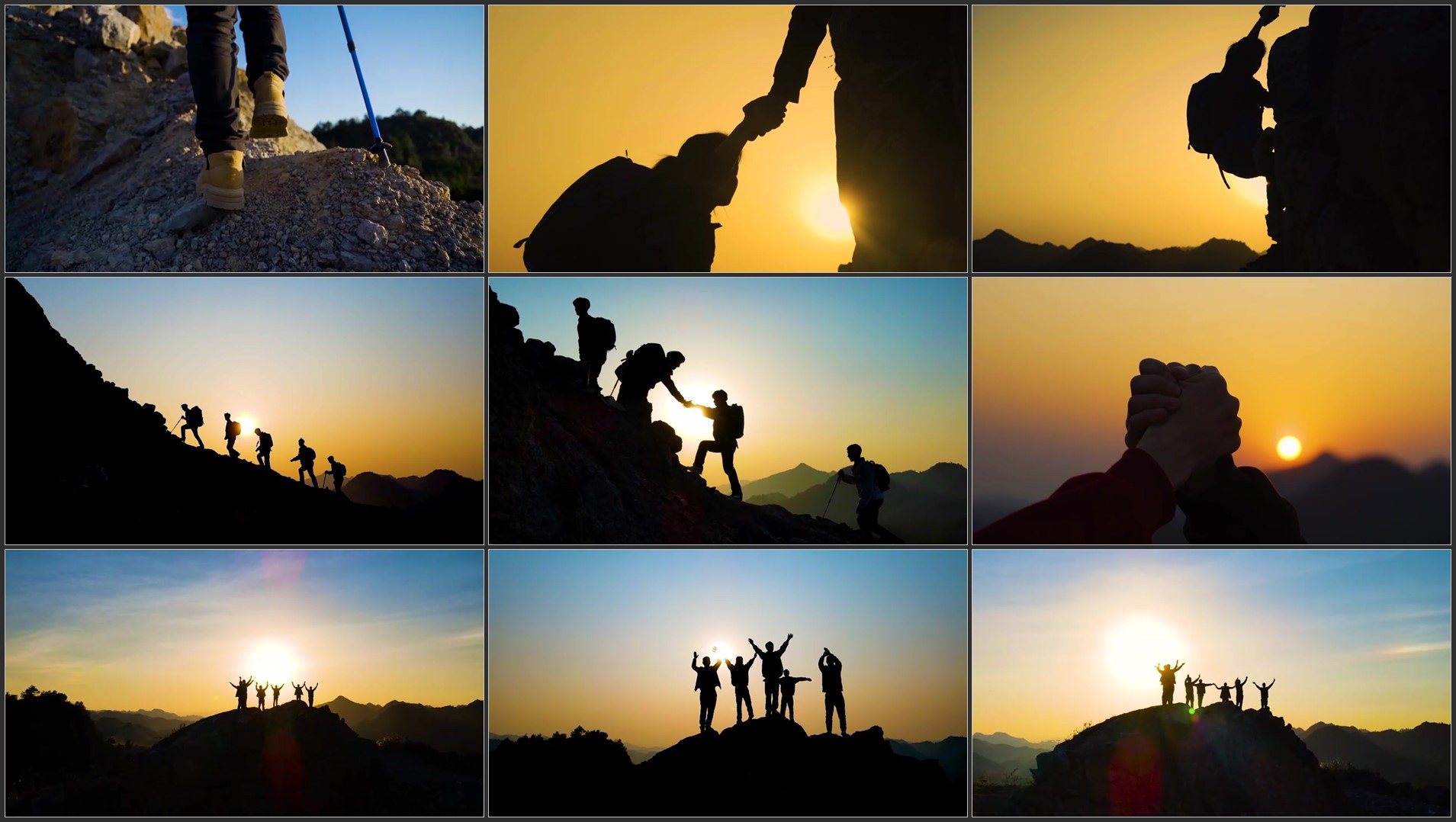 团队登山剪影攀登顶峰团队协作精神山顶呐喊