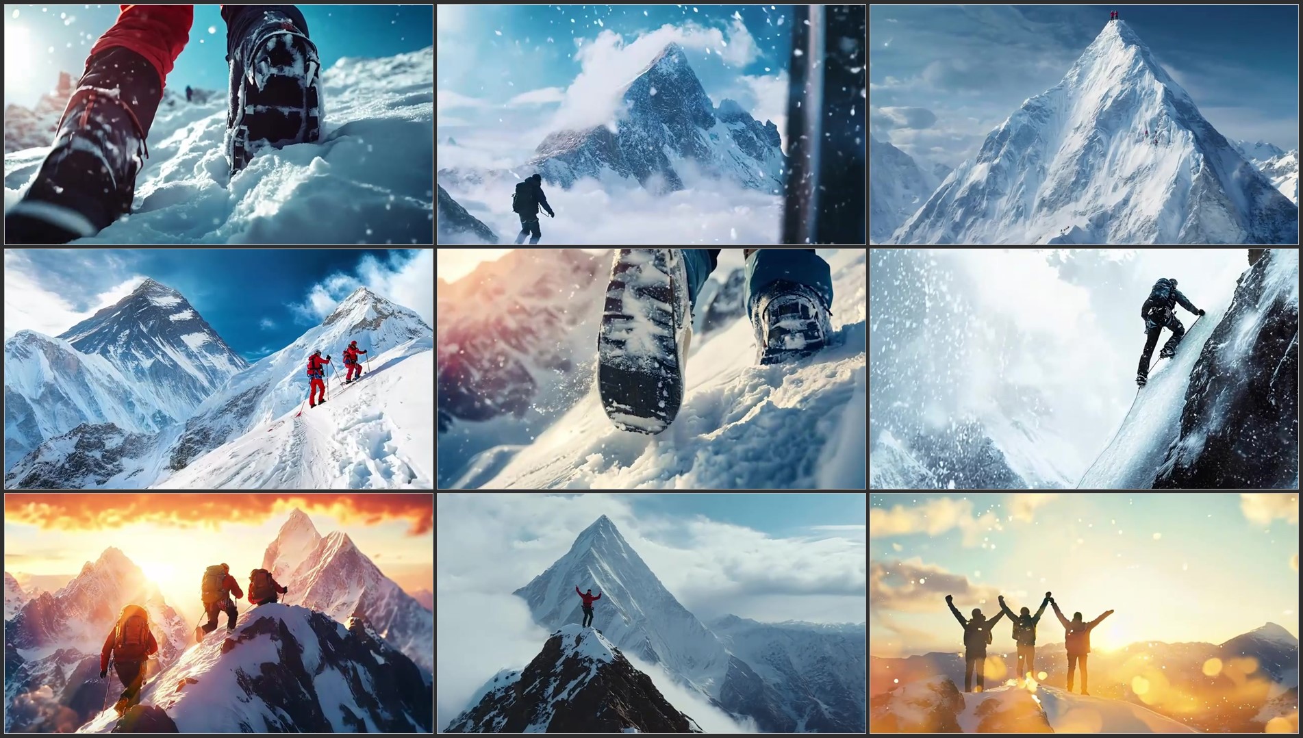 团队徒步励志攀登雪山奋斗登顶登山勇攀高峰