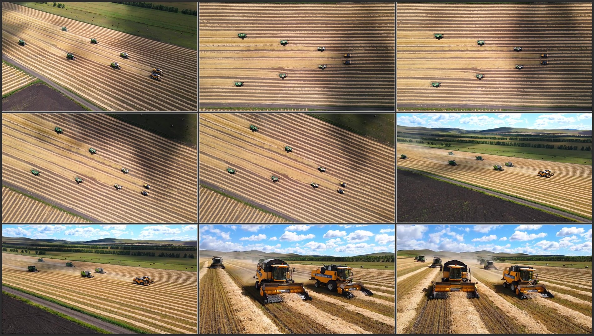 丰收小麦收割机秋收编队