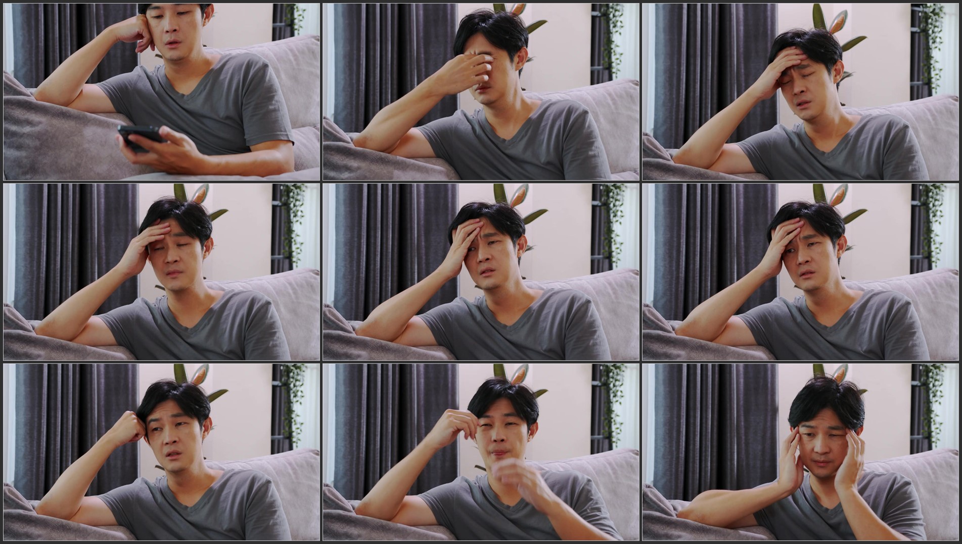 患有头痛的痛苦的亚洲男子病毒引起的头痛.