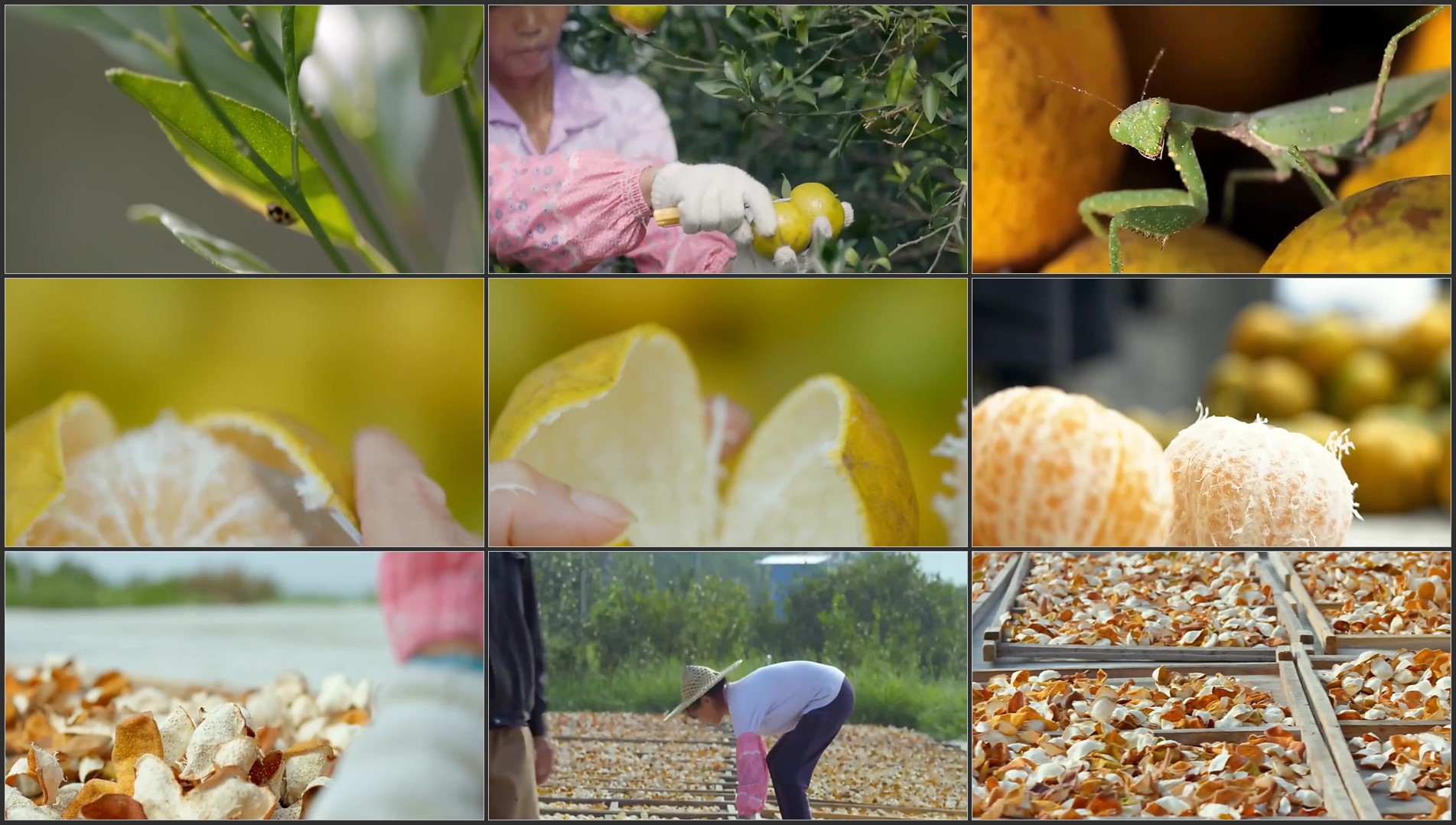 中医 果农摘桔子剥橘子皮制作晒干陈皮中药材下载
