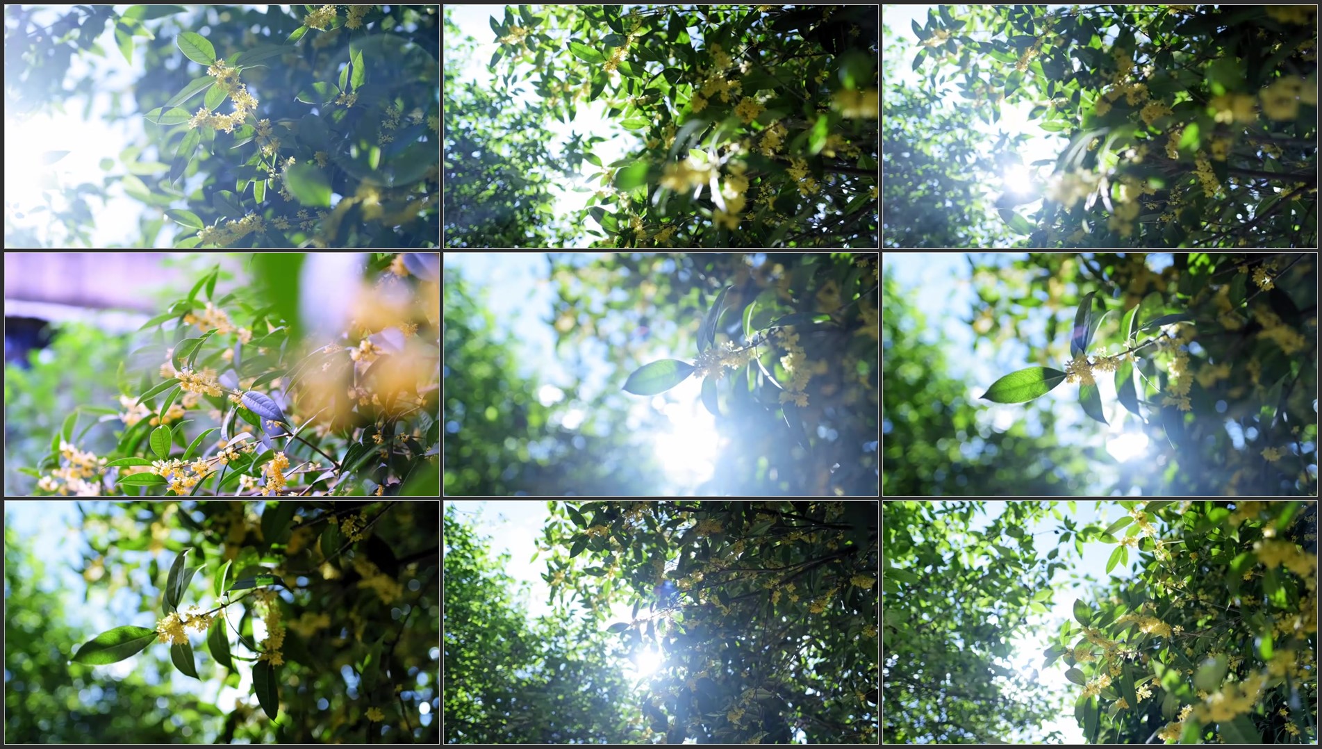 唯美写意意境空镜头秋分逆光桂花树叶阳光.