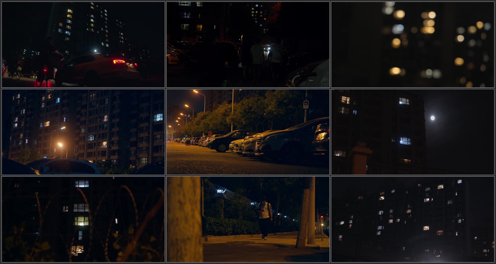 城市小区夜晚、小区路灯.