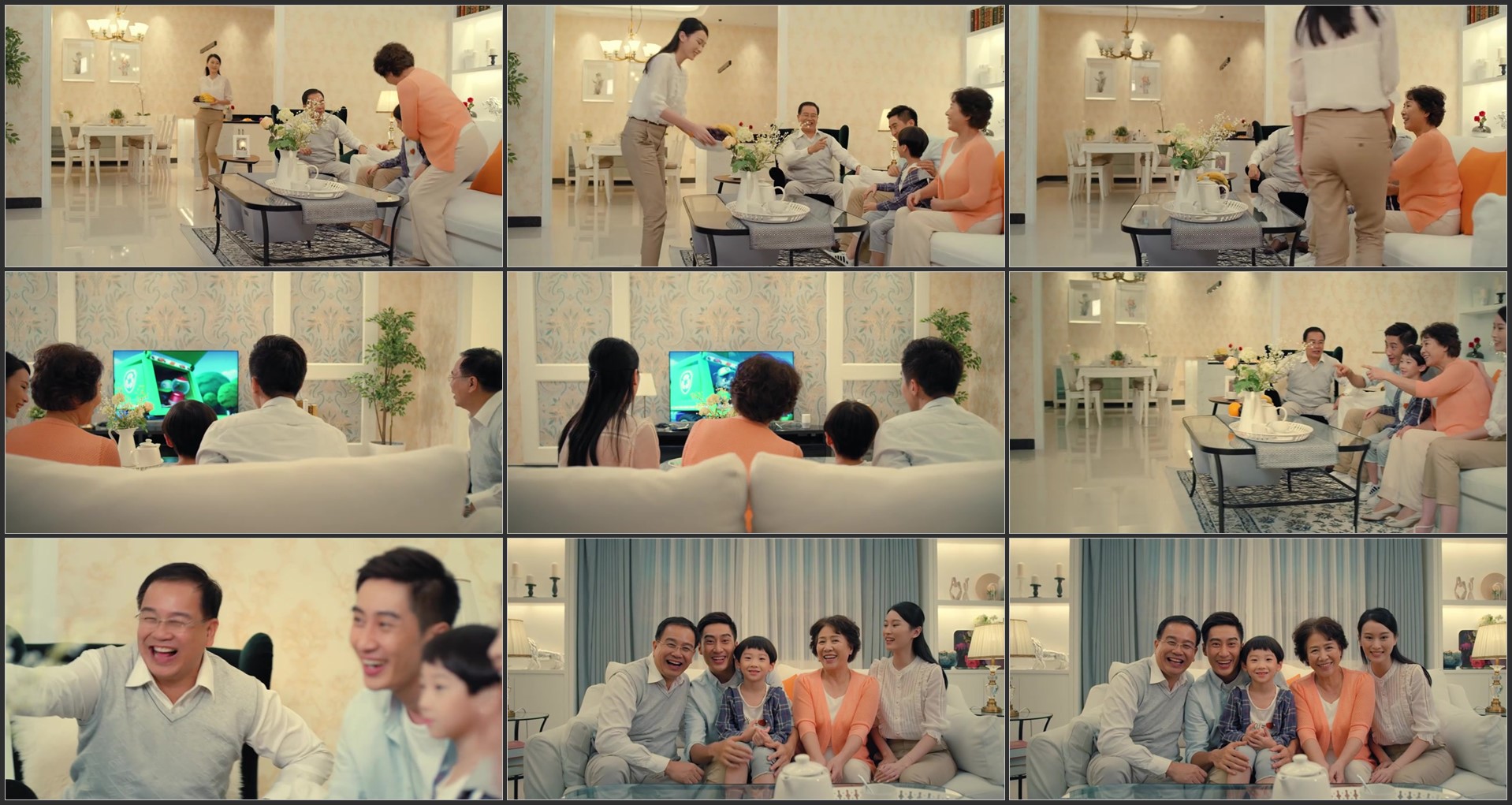 一家人其乐融融客厅看电视幸福家庭