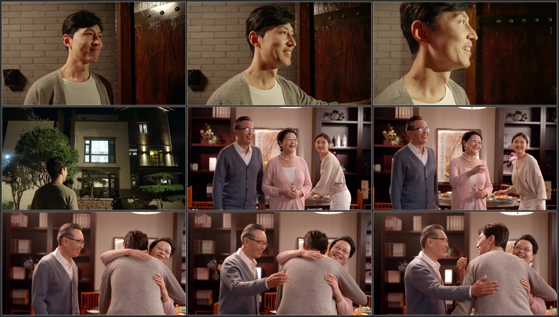别墅区男子回到家里走进家门拥抱父母