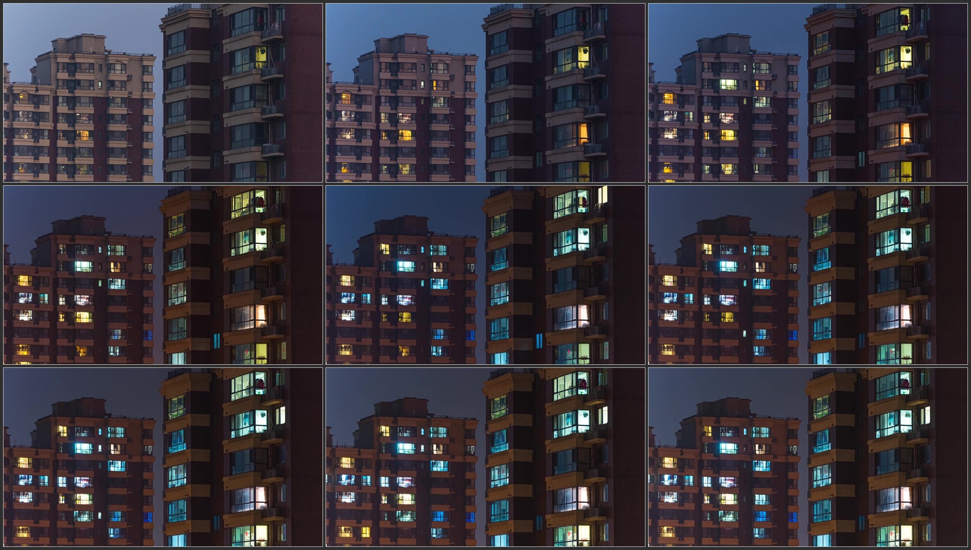 万家灯火小区夜景居民楼开灯亮灯延时.