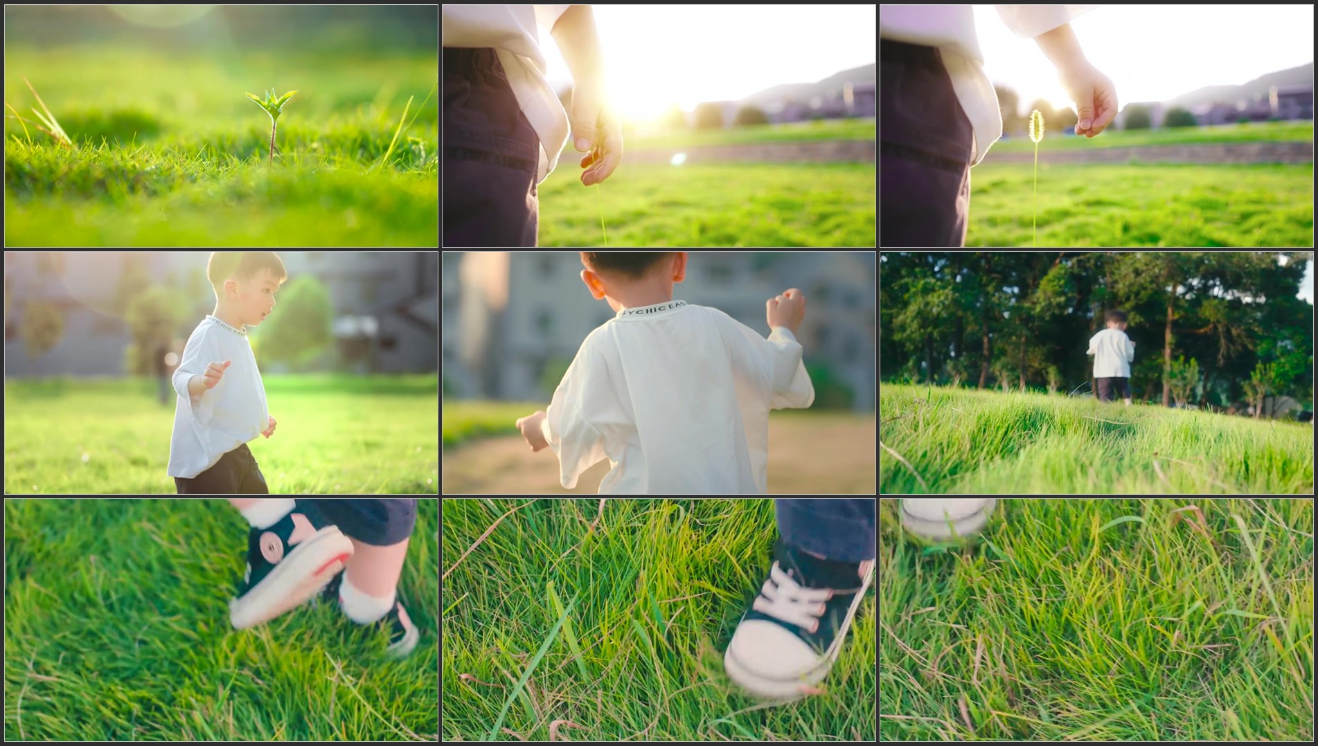 唯美阳光下踏青小孩孩子草地草坪春分公园