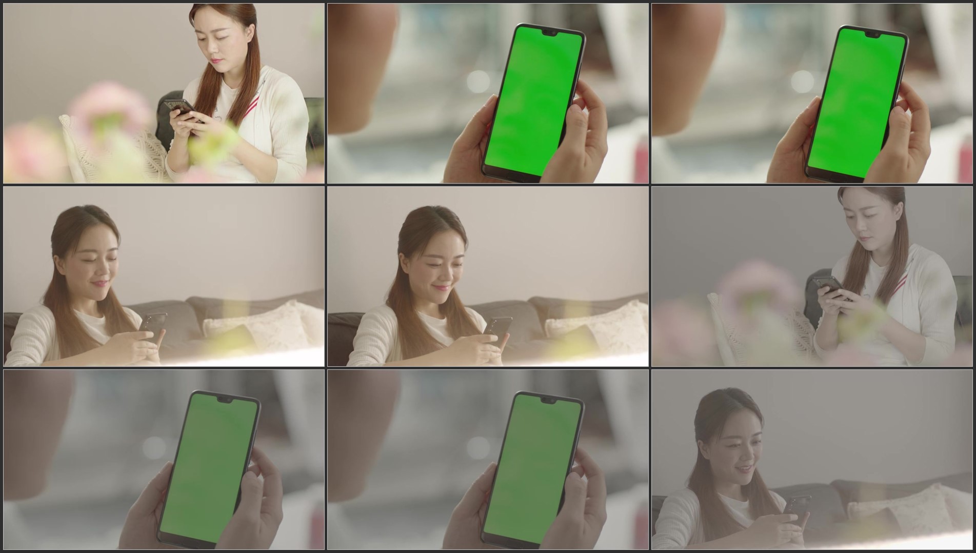 美女家里看手机.